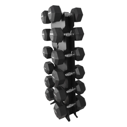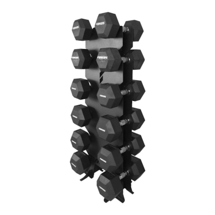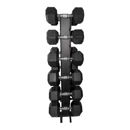 O diferencial desta torre é a inclusão de proteção de borracha especialmente projetada, oferecendo um apoio suave e seguro para os dumbbells. Isso não apenas preserva os pesos contra possíveis danos, mas também ajuda a reduzir o ruído durante o manuseio, garantindo uma experiência tranquila e agradável durante os treinos.